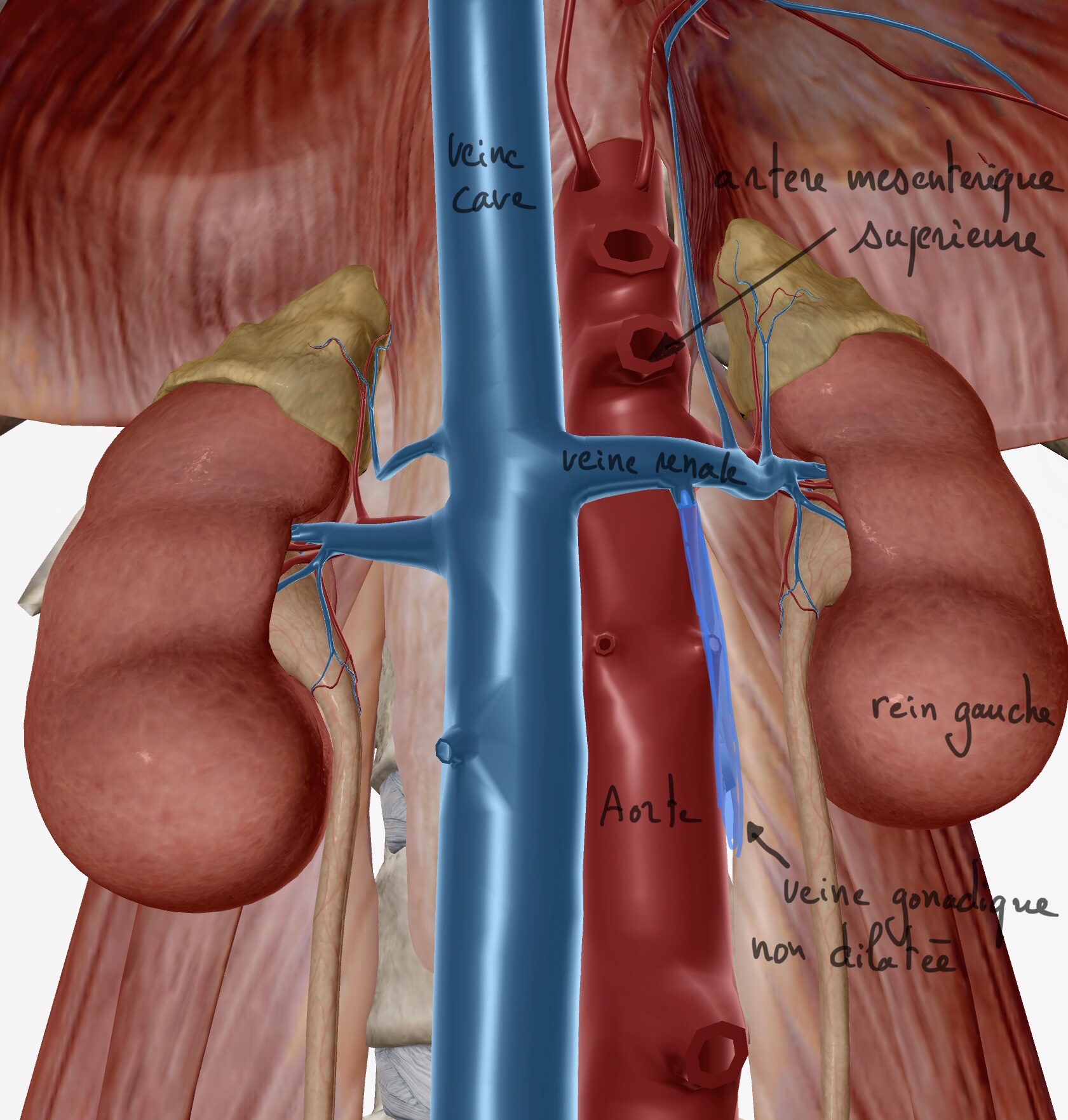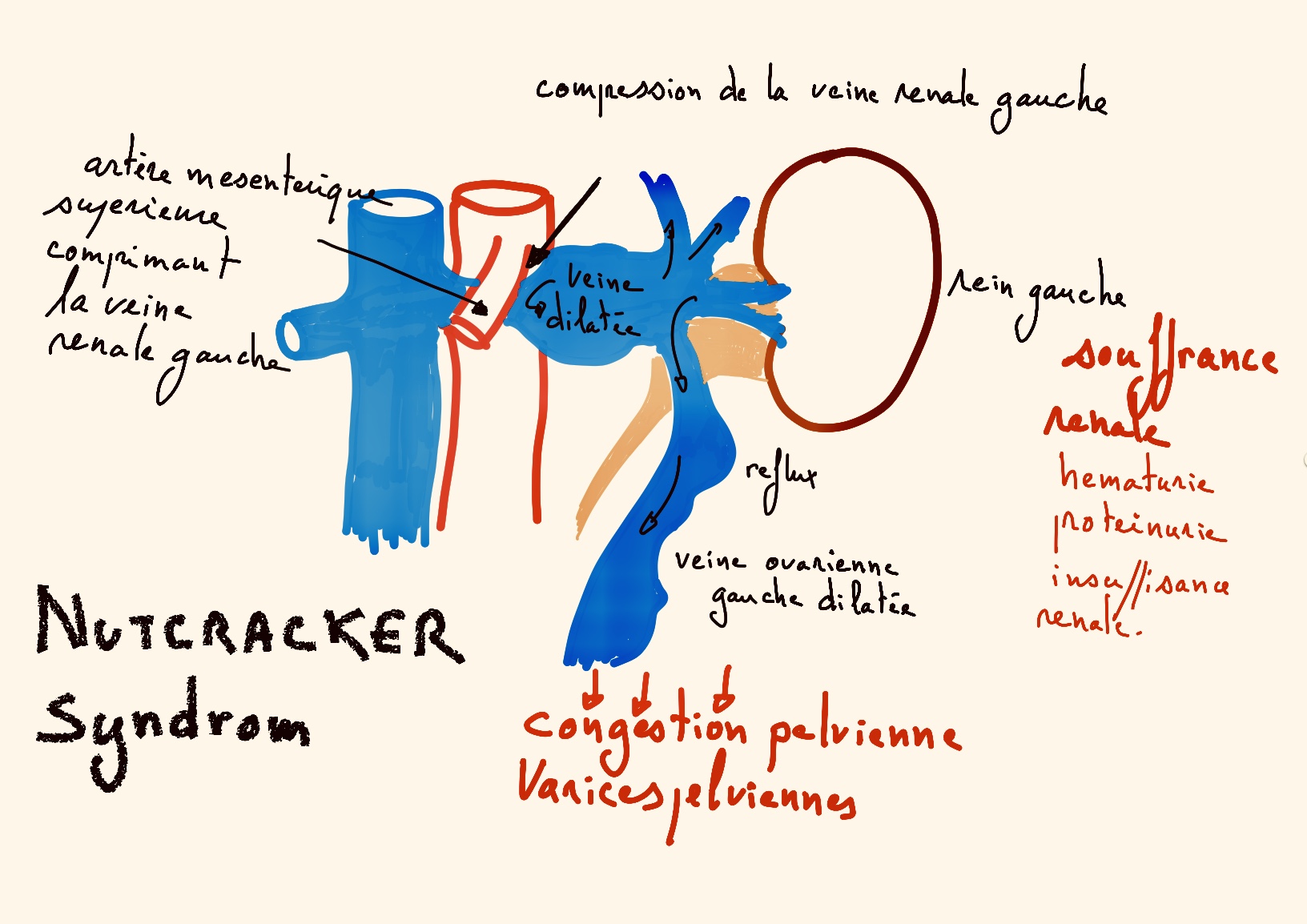 Schema de la compression de la veine rénale gauche et ses conséquences